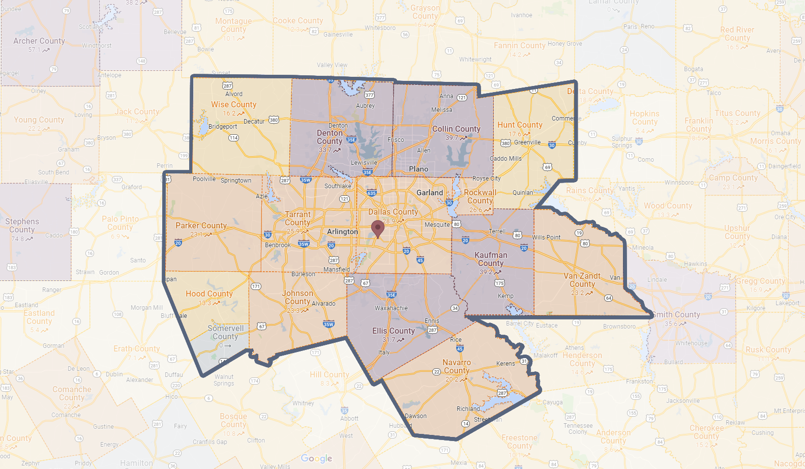 We are currently servicing the following counties in the DFW area: